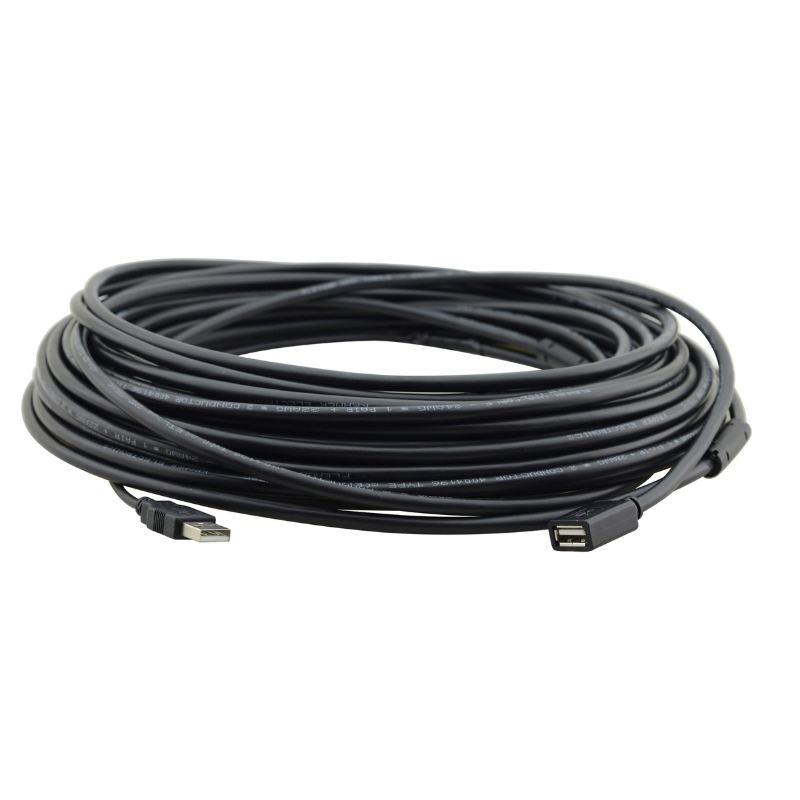Due to its design, USB cable has a normal maximum length of about 5 meters (16.4 feet), but you can get longer distances by using the CA−UAM/UAF active USB extension cable from Kramer!